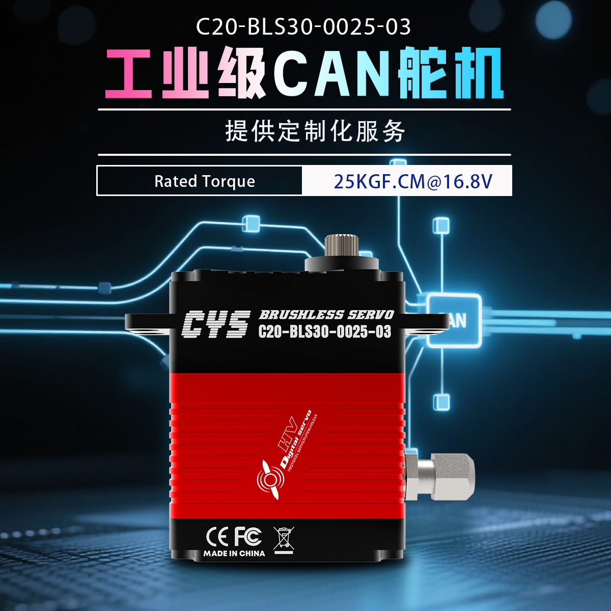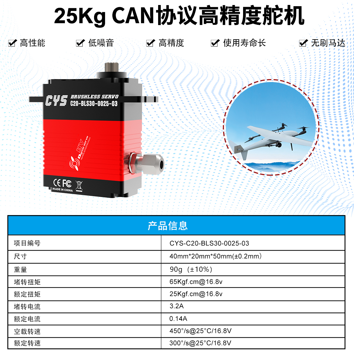 描述:25KG全金属无刷舵机 CAN总线 防水钢齿轮 无人机航模配件